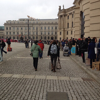 Hunderte Meter lange Schlange vom Guggenheim Museum bis fast zur St. Hedwigs-Kathedrale. Offenbar sind derzeit alle Künstler der …