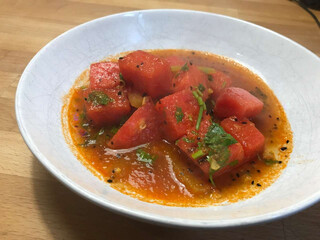 vorgestern zum ersten mal wassermelone mit einem grossteil der (eingelegten) schale gegessen. (link zum rezept von ottolenghi im blog)