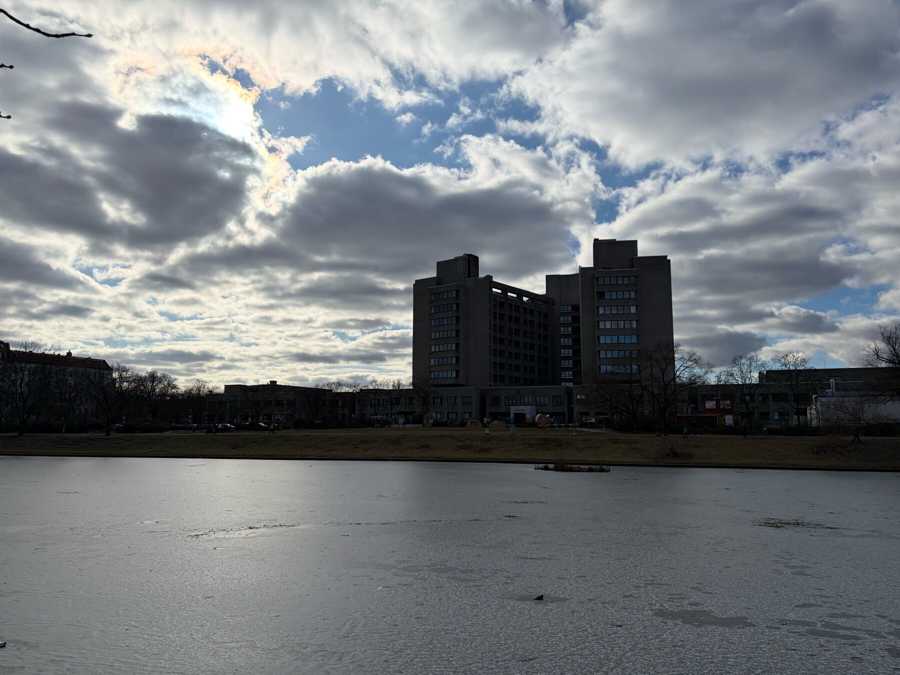 urban krankenhaus fotografiert über den gefrorenen landwehrkanal