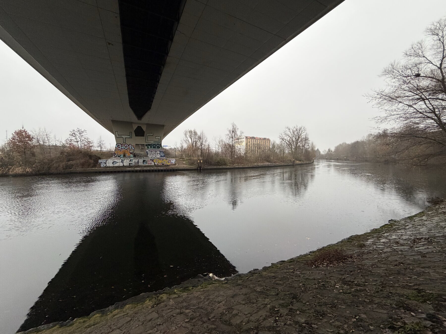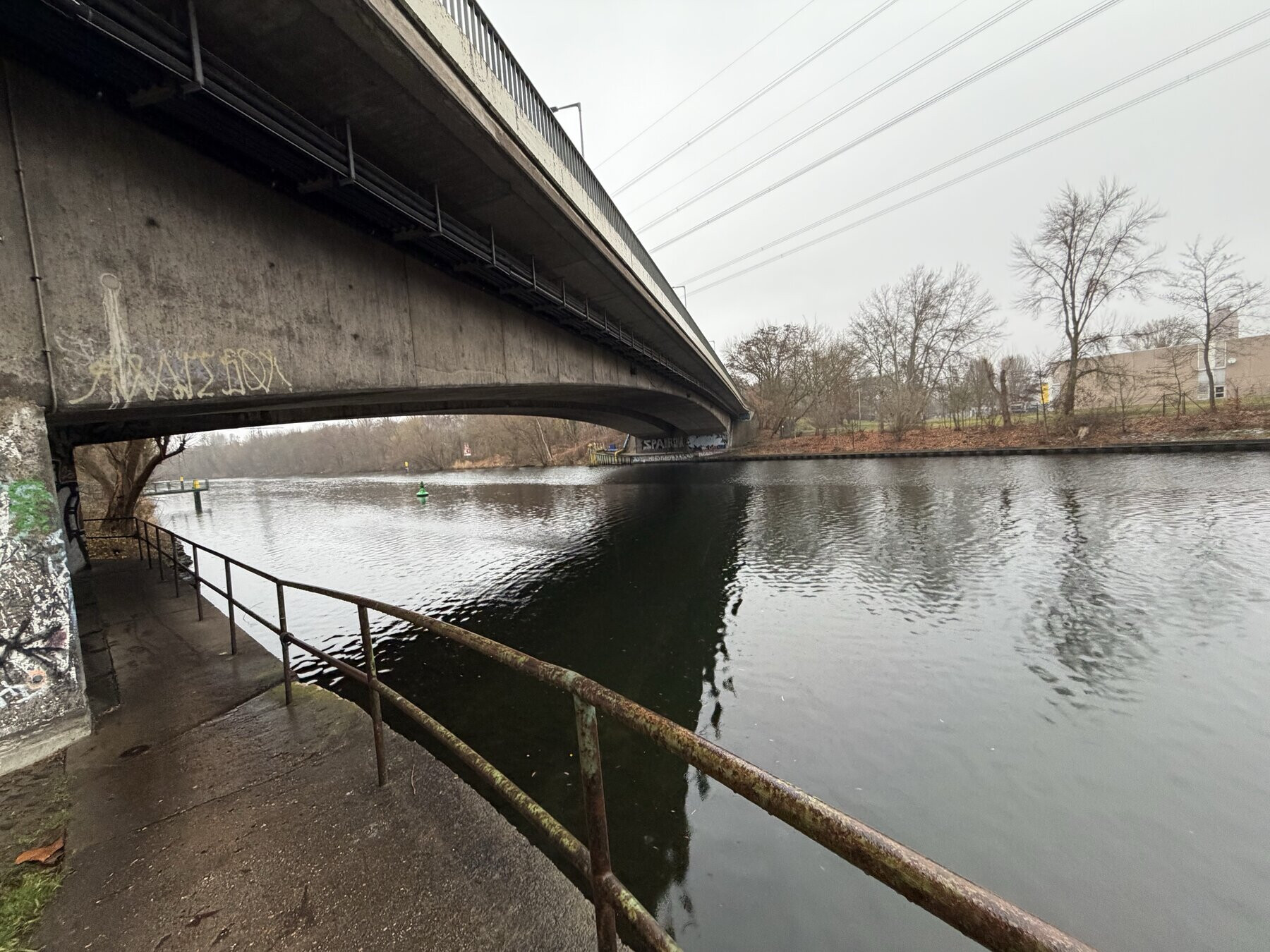 zum morgenspaziergang vom wedding zum s-bahnhof jungfernheide gefahren und dann wieder mal am westhafenkanal langgelaufen. dabei sind wir zwar nicht unter sieben, aber unter sechs brücken gelaufen. mindestens zwei brücken haben wir unterfahren. passt also. unterwegs hat es die ganze zeit leicht genieselt und es war um die 7° C warm.