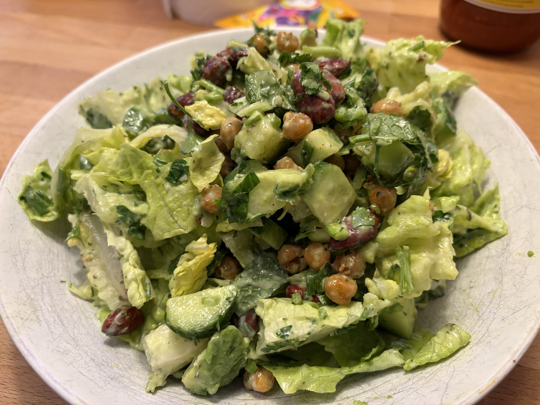 grüner salat nach nisha, serviert mit dressing