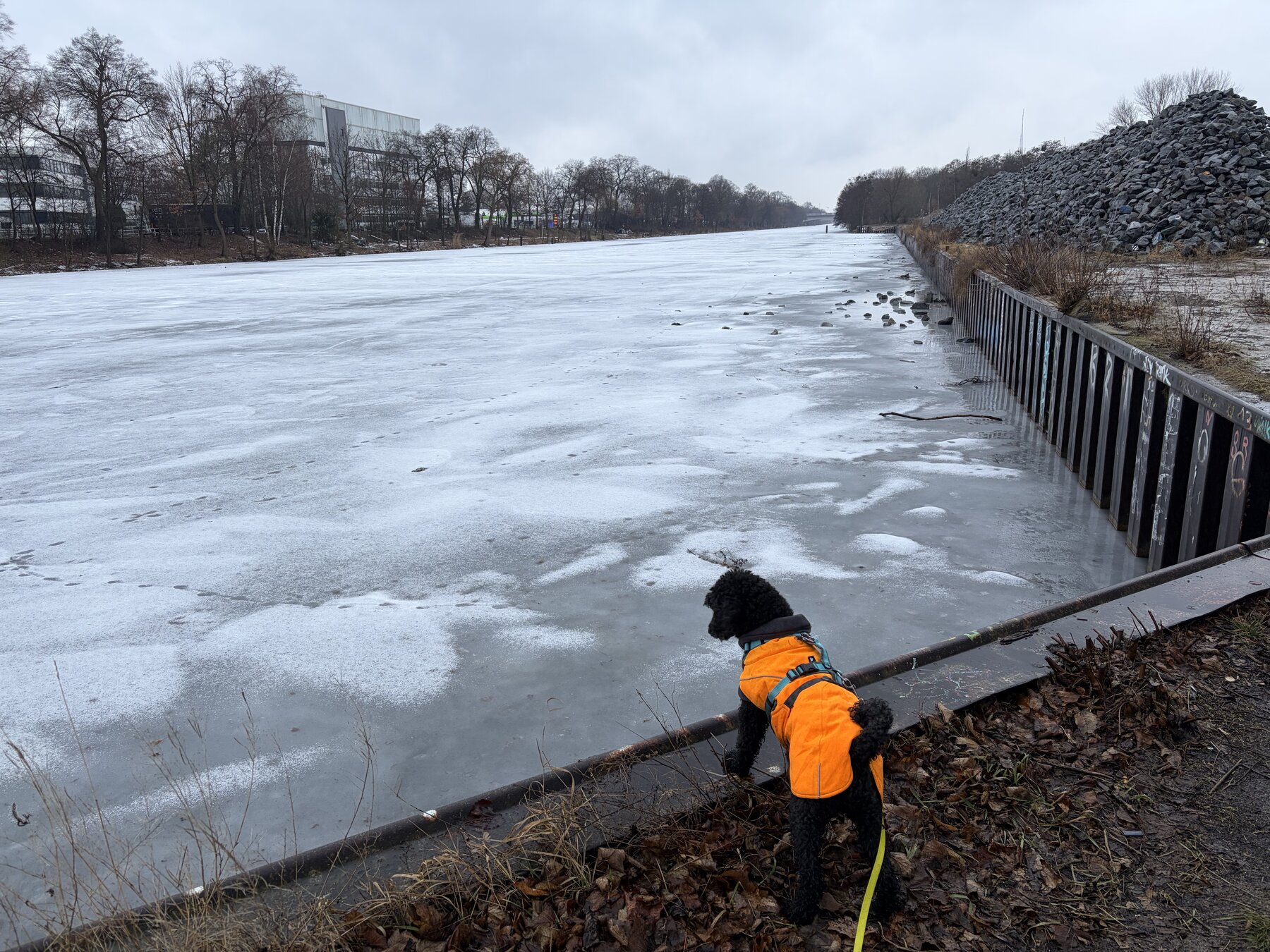 alt-text: frida schaut auf den zugeeisten berlin-spandauer-schifffahrtskanal