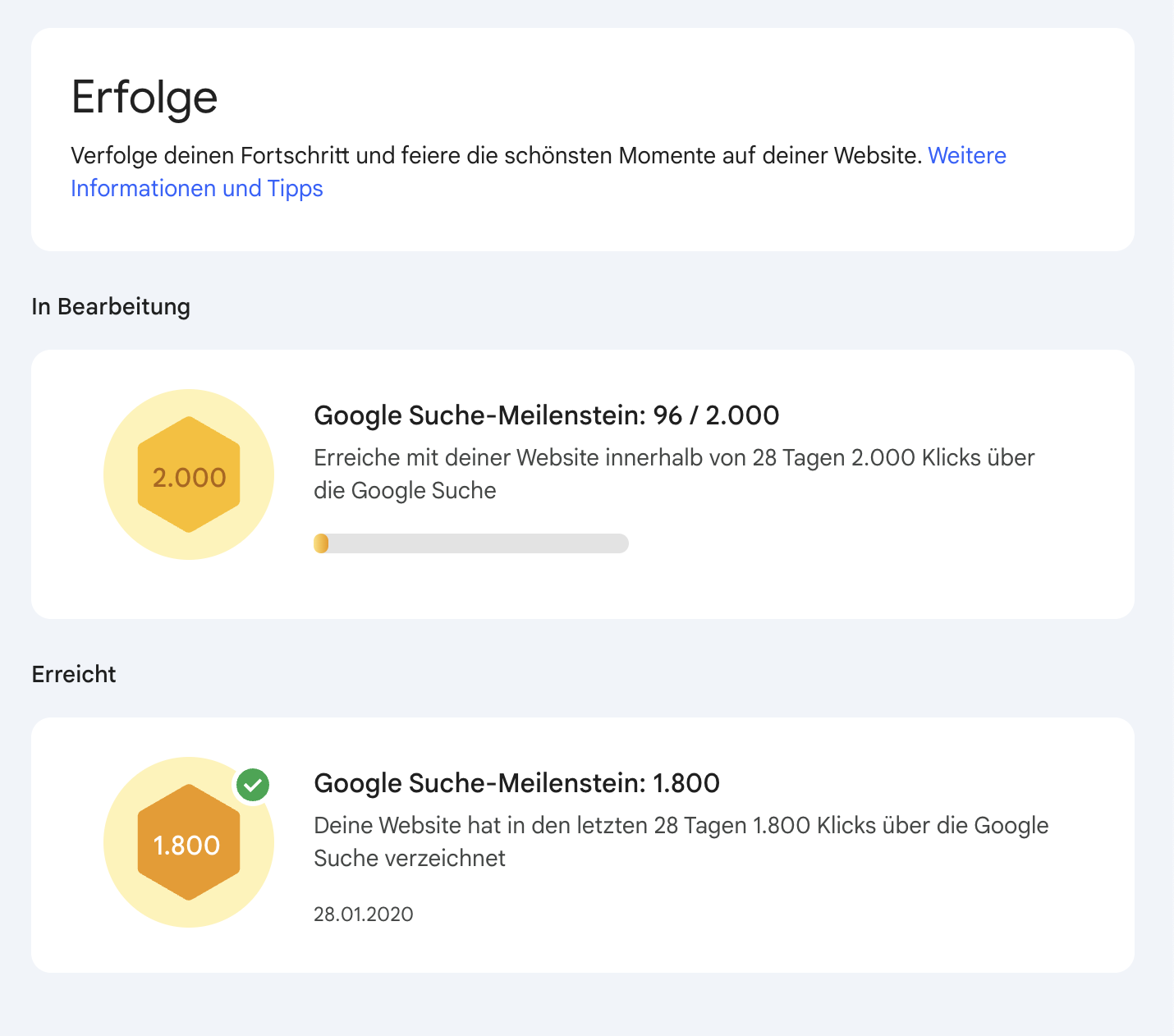 besonders krass ist die insignifikanz dieser website im vergleich zu früher zu sehen, wo sie auch schon insignifikant war. das ist ein screenshot meiner „erfolge“ in den google webmaster tools.