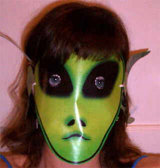 Toll! Endlich stoße ich auf die Alien-Tarnmaske, von der ich gestern in der Frankfurter Rundschau gelesen habe. Die werde ich gleich ausschneiden und mich tarnen.