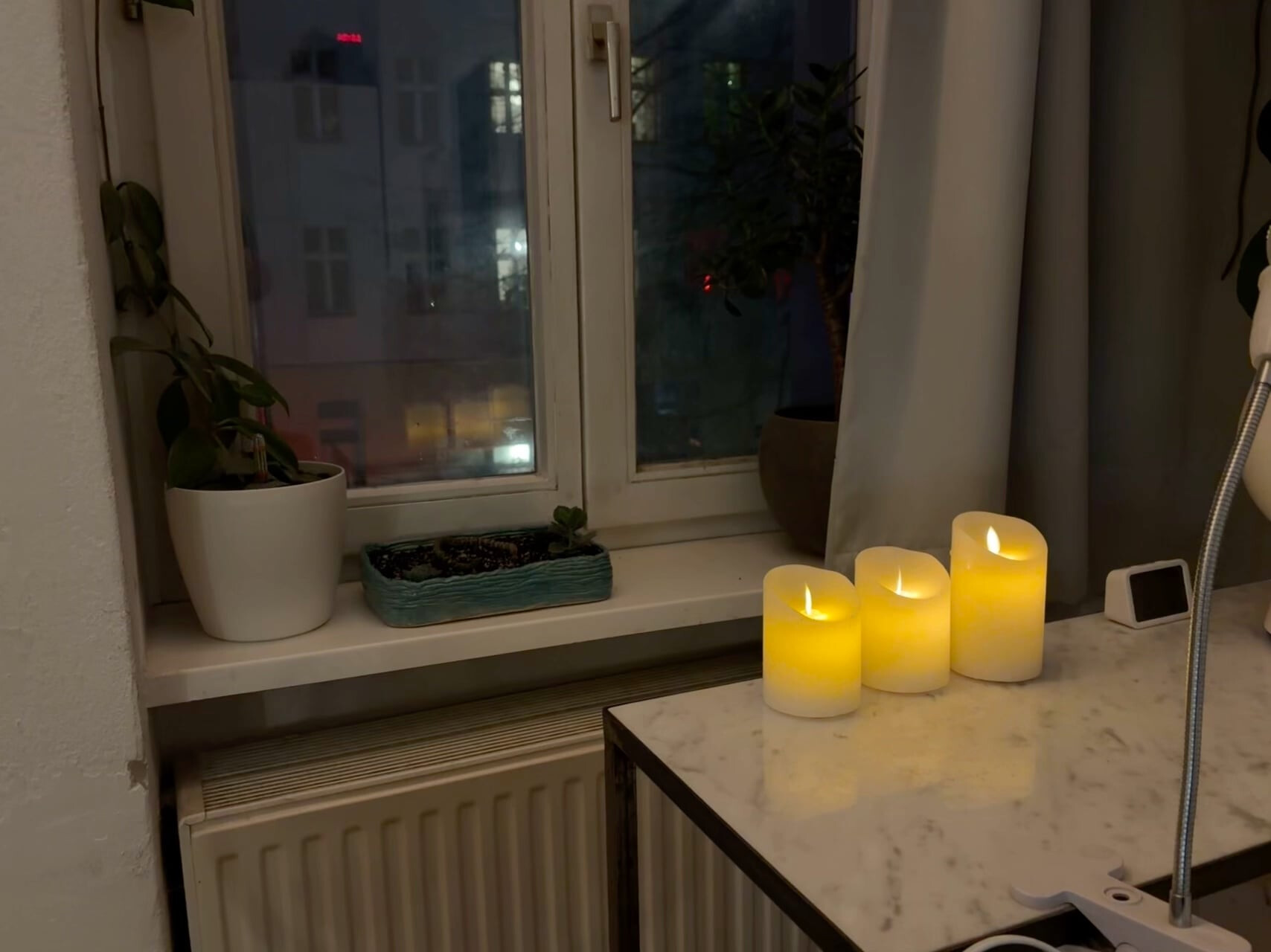 jetzt wird es schon so früh dunkel, dass die kerzen schon während der arbeitszeit angehen.
