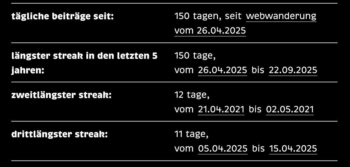 wenn meine neugier gross genug ist oder ich ein ziel als erstrebenswert genug befinde, verbeisse ich mich gerne in probleme, bzw. ihre lösung. manchmal sitze ich stundenlang daran heimautomatisierungsprobleme zu lösen oder „features“ in wirres.net einzubauen. von aussen sieht die kosten-nutzen-rechnung eher schlecht aus: ich „verschwende“ nicht nur aus sicht der beifahrerin zeit, sondern auch objektiv. aber subjektiv ist das wie kreuzworträtsel lösen. es hat keinen oder kaum nutzen, aber es hält das denkorgan auf trab oder trainiert eben den geist. der umweg als ziel.