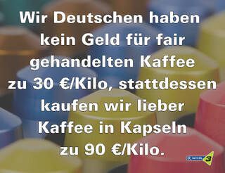 dieses bild, dass das radio bayern 3auf facebook veröffentlicht hat, ist stark ergänzungsbedürftig. (abgesehen davon, dass nespresso auch ausserhalb deutschlands alu-kapsel-kaffee zu relativ hohen preisen verkauft.)