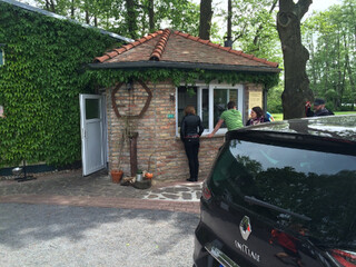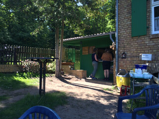 gerastet haben wir nach einem kleinen verlaufer und schlenker dann im alten forsthaus wensickendorf. das war angenehm billig (tasse kaffee ein euro, eine flasche hefeweizen zwei euro, leckerer kuchen, leberwurstbrötchen, bockwürste für je ein oder zwei euro). dafür das das forsthaus am arsch der welt liegt und kaum mit dem auto zu erreichen ist, war erstaunlich viel dort los. überhaupt war auf der strecke ungewöhnlich viel wanderverkehr.