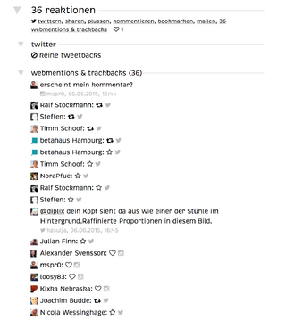 was ich am indieweb besonders angenehm finde ist, dass man unter artikeln auf der eigenen seite die reaktionen auf die syndizierten kopien per bridgy wieder einsammeln kann (zumindest die von twitter, instagram, g+ und facebook). das sieht man auch unter dem podiums-selfie.