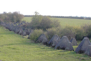 auf dem bild sieht man auch wie hilflos und naiv die gut gemeinten reparaturversuche aussehen. abgesehen davon vermute ich übrigens auch, dass verwitterungsbeständige stelen aus beton ein ding der unmöglichkeit sind. um zu verhindern dass wasser in den beton eindringt — und dann bei frost sprengt — müsste man die stelen mit kunstharz oder lack überziehen, den man dann aber auch regelmässig erneuern müsste. das wäre bestimmt nicht im sinne des erfinders.