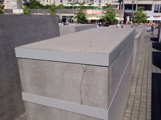 ich sehe das eigentlich wie vor sieben jahren: warum soll am stelenfeld nicht auch der zahn der zeit nagen? eigentlich altert beton ja durchaus in würde. er ist, soweit ich weiss, durchgefärbt und die stelen sind massiv, also durch und durch aus armiertem beton gebaut. das heisst theoretisch, dass wegen der armierung nur kleinere stücke rausbrechen können.