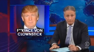 statt jemanden „hinterfotziges arschloch“ zu nennen, hat jon stewart kürzlich donald trump „fickgesicht“ („fuckface von clownstick“) genannt. na gut, die „könner“ und „profis“ der daily-show-redaktion hatten „recherchiert“, dass das donald trumps geburtsname sei. was nicht stimmt, aber irre witzig ist. viel witziger als puffwitze.