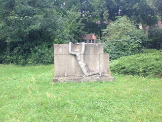 gleich nach 700 metern das erste highlight der wanderstrecke, eine robocop-plastik für den frieden im belgischen viertel und die welt. umgeben von rosen, bäumen und biertrinkern (nicht im bild).