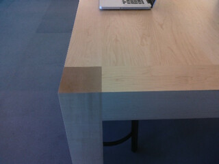 mehrere eher nebensächliche dinge haben mich schwer beeindruckt. einerseits scheinen fast alle der möbel aus massivholz gefertigt zu sein. viele möbel gibt es zwar nicht, ausser bänken, tischen und theken, aber die die es gibt sind äussert liebevoll gebaut. dass massivholzoptik schwer im trend ist hatte ich schonmal beschrieben, aber das was apple dort im store stehen hat ist echt massiv.