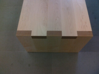 die eigentliche tischplatte ist nicht wie sie auf den ersten blick scheint 10 oder 12 zentimeter dick, sondern nur etwa 4 oder 6 zentimeter. das kann man ganz gut erkennen wenn man die öffnungen an der tischoberseite ansieht, durch die kabel hindurchgeführt werden. und dort sieht man auch: alles massiv. unter den tischen ist an jeder ecke eine zweifach unterputz-steckdose eingelassen.