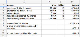 das macht insgesamt 1.145,14€, also pro monat 47,71€. lässt man den vertrag 48 monate laufen, ergeben sich in den 48 monaten monatliche kosten von 48,81€.