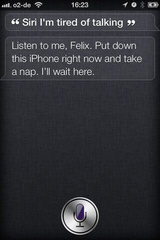 wirklich beeindruckend ist hier vor allem die tiefe integration von siri in das betriebsystem des iphones: wenn mich das telefon dazu auffordert text einzugeben, kann ich, statt auf der virtuellen tastatur des iphones zu tippen, das telefon einfach ans ohr halten. das iphone erkennt meinen wunsch zu sprechen und lässt sich text diktieren.