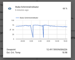 die aussentemperatur liefert mir die dark sky api, die innentemperatur und -feuchtigkeit die innensensoren. so habe ich im home-assistant nicht nur einen indikator für die schimmelgefahr, sondern kann auch sehen wie der wert fluktuiert — oder mir hinweise auf zu hohe werte aufs handy senden lassen.