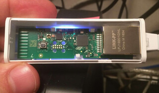 in der linken mitte sichtbar, der factory-reset-schalter. nach ca. 8 sekunden betätigung, fing die bridge an zu blinken und liess sich dann klaglos wieder mit homekit verbinden. leider meldete mir die home-app immer wieder, dass die tado-bridge nicht erreichbar sei. aus unerfindlichen gründen scheint die tado-bridge nicht den erwartungen an reaktionszeit und antwortverhalten die homekit an sie stellt gewachsen zu sein. eine solche nichterreichbarkeit erlebe ich hin und wieder mit der open-source und bastellösung homebridge, die das homekit-protokoll reverse-engineered hat und für nicht von apple zertifizierte geräte öffnet. die hue-bridge habe ich hingegen nicht ein einziges mal (seit 5 monaten) zögerlich oder unerreichbar gesehen. das verhalten der tado-bridge, also die nichterreichbarkeit und unbefriedigende aktualisierungsintervalle, lässt sich auch nach dem dritten zurücksetzen der tado-bridge-verbindung reproduzieren. ich hoffe sehr, auf ein baldiges firmwareupdate für die bridge, denn so ist die homekit-integration so gut wie unbenutzbar.