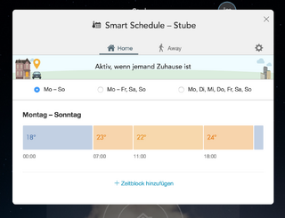 hat man auf der app die anwesenheiterkennung, also das tracking aktiviert, senkt tado die temperatur bei abwesenheit ab und fängt auf dem weg nachhause wieder an, die eingestellte temperatur einzupendeln. bei meinem bisher einzigen test, schien das ganz gut zu funktionieren.