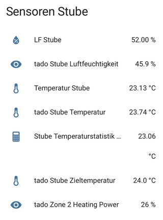 das schöne an vernetzten sensoren ist einerseits, dass ich die daten sehen kann, ohne aufzustehen. am rechner, auf dem handy. mit den daten im (heim-) netz kann ich mir die daten auf verschiedene weise ansehen (bilder vom home-assistant, home-assistant-dashboard oder in apples home-app).