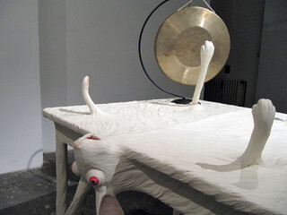 lange geplant, endlich (so einigermassen) umgesetzt. der gong, den sich die beifahrerin zu weihnachten hat schenken lassen (hier gekauft), zu automatisieren. diesen chinesischen gong hatte sich die beifahrerin vor ein paar jahren mal geliehen und eine arbeit damit ausgestattet.