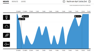 was den schlafalgorithmus zudem komplett durcheinander bringt: wenn man sich in den abendstunden einmal kurz ins bett legt, zum lesen oder fernsehgucken, dann wieder ein paar stunden aufsteht und später wieder hinlegt. am abend des ersten april habe ich mich beispielsweise um 22 uhr für 20 minuten hingelegt und bin dann erst gegen zwei uhr morgens wieder ins bett.