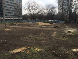 auf der fi­scher­insel soll ein wei­te­rer wohn­turm ge­baut wer­den. mir fiel das ges­tern auf, weil an ei­ner ecke, wo bis­her ein park war, plöt­zöich die bäu­me fehl­ten.