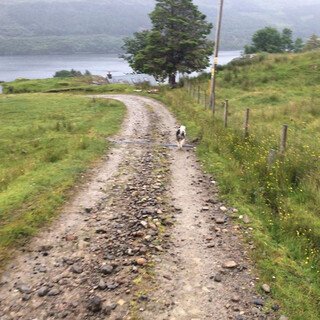 kurzspaziergang um’s b and b bei ullapool. der sehr freundliche collie hat uns ungefragt begleitet.