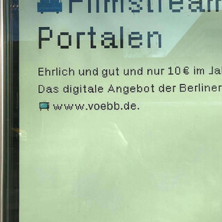 die entscheidung der voebb nen grottigen pixelfont zur werbung zu nutzen erscheint halbherzig.