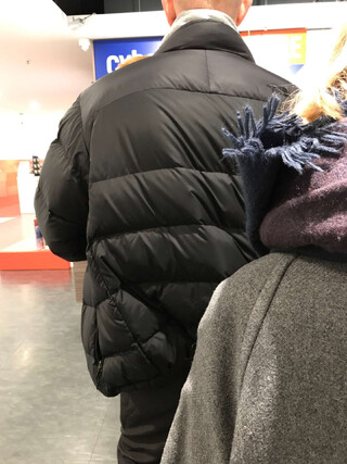 13 leute inner schlange. jemand bezahlt seit 15 minuten einen fernseher. (bei cyberport)