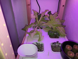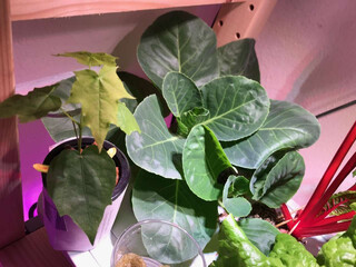 #ikeaväxer woche 20: der mangold geht ab, die zweite generation rauke auch, koriander macht sich und die basilikums sind teilweise monströs. unten noch ein paar salate, unter anderem endivie vielversprechend. jedenfalls gibt’s jetzt bald mangoldauflauf.