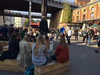 weiter zur republica, wo man dieses jahr am eingang die taschen auf feuerwerkskörper oder sprengstoff oder waffen untersucht. ich vermute, hier ist auch das ordnungsamt oder die feuerpolizei am werk. das bier, das ich von der tankstelle gegenüber mitgebracht habe (€1,80 für einen halben liter), wurde nicht moniert.