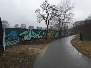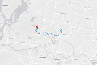 der fussweg ist relativ interessant, aber leider, wie man auf der karte auch sieht, ziemlich kompliziert. zweimal bin ich in sackgassen gelaufen, weil die gegend dort durchschnitten ist von kleingartensiedlungen, umzäunten privatgrundstücken und betriebsgeländen. witzigerweise bot mit apple’s karten applikation auf dem iphone gar keinen fussweg an, google-maps berechnete immerhin die zeit korrekt. aber ein paar wege die google vorschlug waren nicht zugänglich oder verzäunt.