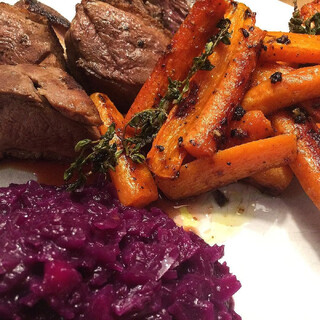 die gebackenen möhren sind von ottolenghis nopi (mit öl, knoblauch, korianderpulver, thymian und honig mariniert, 30 minuten bei 220° gebacken), die entenbrust schmorte 12 minuten auf der fettseite, 34 minuten auf der fleischseite und nach dem aufschneiden hab ich die stückchen nochmal je 30 sekunden bei niedriger hitze durchgegart. der aldi tiefkühlapfelrotkohl ist der beste rotkohl der welt. besser kann ich den auch nicht selbst machen.