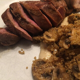 entenbrust mit haselnuss-bier-butter (ohne butter), mit quinoa und pilzen. natürlich #ottolenghi