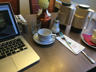 frühstückssituation heute früh. nicht im bild: die dritte kanne kaffee, die ich bereits getrunken habe.