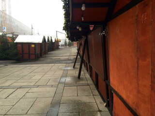 die hütten auf dem weihnachtsmarkt am schlossplatz hat offenbar der grinch aufgebaut, um den markt von innen heraus zu sabotieren. mir fiel das schon direkt nach dem aufbau auf, dass die hüttenmonteure keinerlei wert aufs saubere ausrichten legten. enfach zack die kiste hingestellt, egal ob der untergrund gerade ist oder nicht. jetzt droht dem weihnachtsmarkt am schlossplatz ein kartenhausschicksal, nur noch verzögert durch zwei lächerliche stützbälkchen.