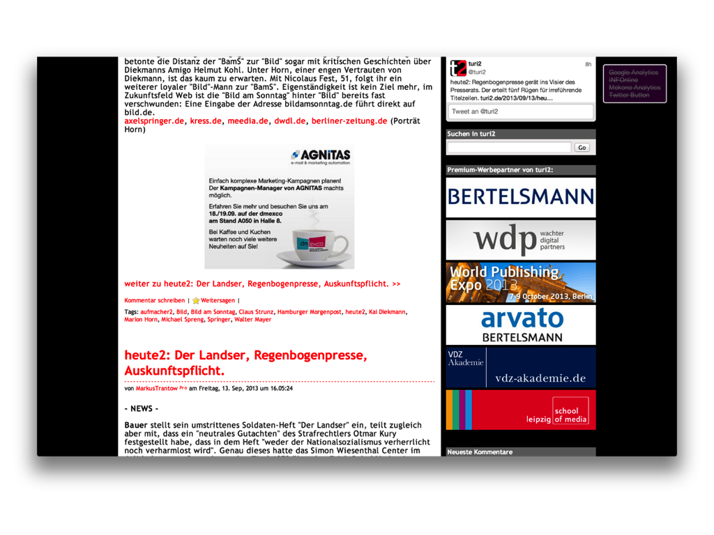 trotz aktiviertem ghostery werden hier alle anzeigen auf turi2.de angezeigt. weil sie „nativ“, oder genauer, vom eigenen server ausgeliefert werden. sogar im RSS-Feed (oder eben newsletter) ist die werbung zu sehen.