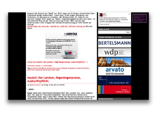 - oder daring fireball: auf dem blog von john gruber gibts eine einzige anzeige. ausserdem gibt es jede woche einen RSS-feed-sponsor. der sponsor wird auf der seite und im RSS-feed vorgestellt (beispiel), unblockbar aber gleichzeitig übrigens auch sehr zielgruppenspezifisch. eine woche feed-sponsorship auf darin fireball kostet $8500 und ist oft über wochen hinweg ausgebucht.