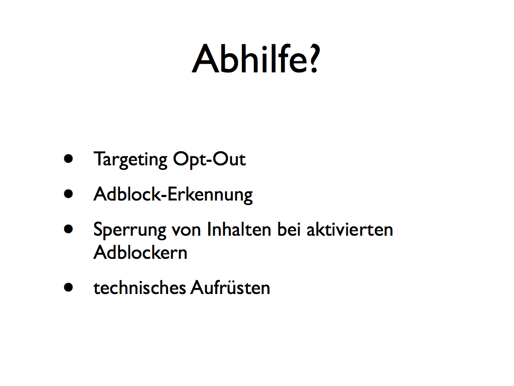 aber, ein technischer wettlauf oder adblockererkennung oder eine sperrung von inhalten bei aktivierten adblockern wird ihnen wahrscheinlich nur kurzfristig helfen.