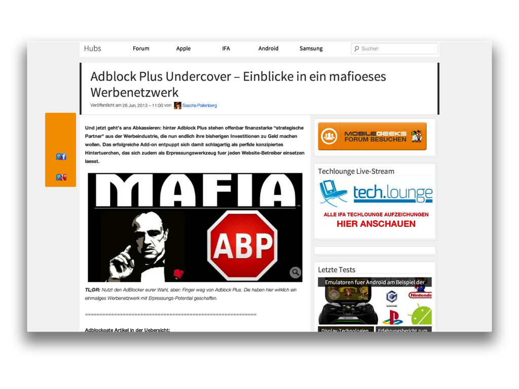 - wie einfach sie einen whitelisting-prozess hätten gestalten können! (also einzelne seiten vom werbeblocker auszunehmen)