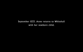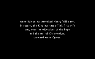 heinrich der VIII. trennt sich von seiner frau und von der römisch katholischen kirche um anne boleyn zu heiraten, in der hoffnung dass sie ihm einen männlichen nachkommen zur welt bringt. anne wird schwanger und kehrt mit ihrem neugeborenen zurück nach whitehall: