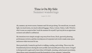 I asked AI what we do with time, and it came back with words that were commercial and violent. We spend time, save time, take time, and make it; manage, track, and save it; we kill time, we pass it, we waste it, borrow, and steal it. We abuse time and it beats us back up, either in retribution or self-defense. It’s a zero-sum perspective of the material of our lives; it makes us prisoners to our own utility.