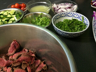 ein paar der zutaten, aus dem rindfleisch wurde salat (!)