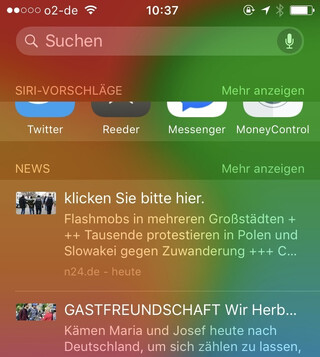 ich weiss nicht, nach welchen kriterien apple in ios9 die news auf der neuen suchseite aussucht — oder wie die news übertragen werden. ich finde aber die überschrift von n24.de sehr charakteristisch.