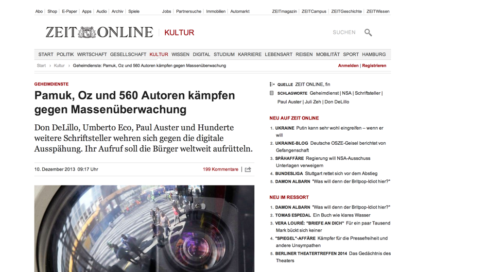 • 560 Au­toren weh­ren sich ge­gen Mas­sen­über­wa­chung
