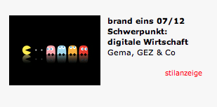 seit ei­ni­gen mo­na­ten über­leg­te ich die zu­sam­men­ar­beit mit po­pu­lis zu be­en­den oder ru­hen zu las­sen und viel­leicht zu ver­su­chen mich selbst zu ver­mark­ten. letz­te wo­che habe ich mich dann ent­schie­den, wenn man mich dort ha­ben woll­te, bei stilan­zei­gen mit­zu­ma­chen. stilan­zei­gen sag­te mir zu, al­ler­dings auch, dass sie der­zeit nicht be­son­ders vie­le (kei­ne) kam­pa­gnen hät­ten. man ar­bei­te an der aqui­se. auch wenn die er­fah­rung dem wi­der­spricht, hof­fe ich doch sehr, dass vie­le wer­be­trei­ben­de, ver­mark­ter oder auf­merk­sam­keits­be­dürf­ti­ge das ein­leuch­ten­de kon­zept von stilan­zei­gen zu wür­di­gen wis­sen und dort vie­le an­zei­gen kau­fen. und ich hof­fe na­tür­lich, dass vie­le an­de­re blog­ger sich das mal an­se­hen.