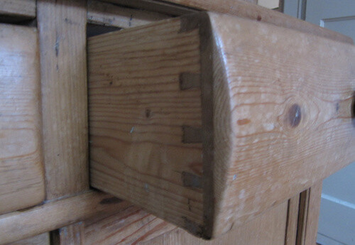die schwalbenschwanz-eckverbindung bei schubladen ist so ein beispiel für die verschiebung von wahrnehmungsmustern. schön fanden schreiner schwalbenschwanz-eckverbindungen früher nicht, da die verbindung aber zweckmässig und irre stabil ist — und vor allem die einzig vernünftige art massivholz-bretter über eck dauerhaft zu verbinden — wurde sie sehr gerne benutzt, aber eben auch fast immer mit sichtblenden versehen. sichtblenden deshalb, weil sich laien nicht für die verbindungstechnik begeistern können, bzw. konnten und lieber schöne, ornamentierte fronten sehen wollten. das hat sich in zeiten von ikea und spanplattenschubladen geändert: schwalbenschwanz-verbindungen gelten jetzt als ein zeichen für qualität, für sauberes handwerk. da hat sich quasi ein expertenkriterium in ein massenkriterium verwandelt und damit gleichzeitig auch die wahrnehmung. plötzlich werden die schwalbenschwanzverbindungen stolz vorgezeigt, statt verblendet.