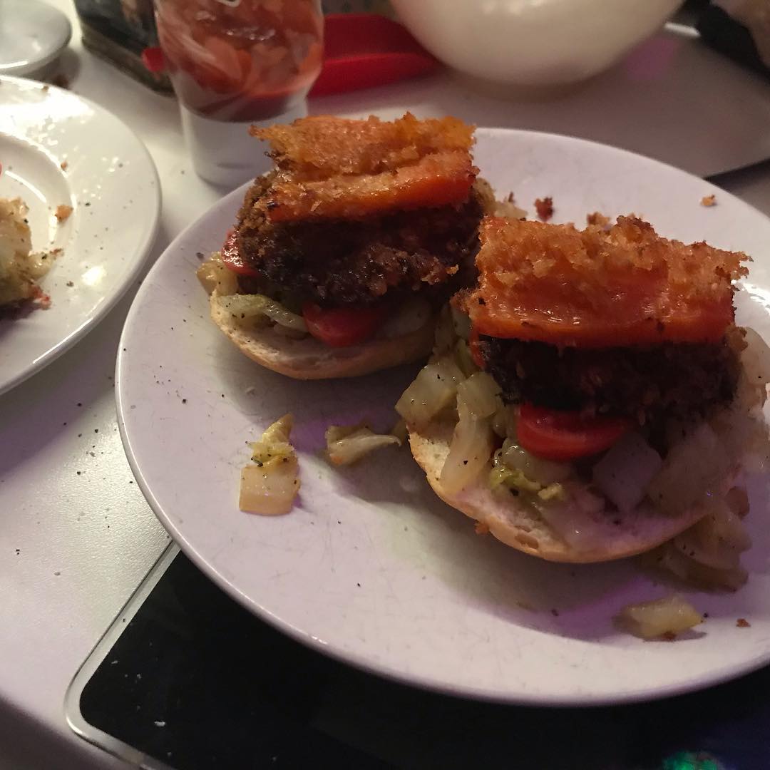 bild zu: wir hatten noch reste: chinakohl, rote beete und paprika. also gabs burger, grob nach …